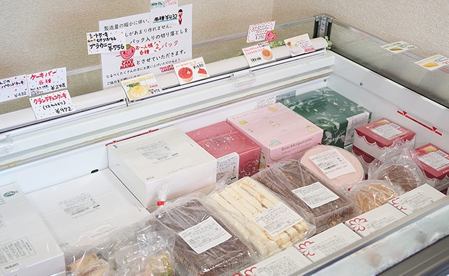 Famiel Confectionery sells a variety of cakes to hotels and restaurants nationwide in Japan. The photo above shows the process of spreading jam on baked cheesecakes.