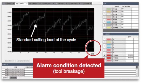 Machine shops are required to be able to handle fluctuating production demands. NC MachiningAID automatically learns the good machining condition and generates an alarm when it detects bad machining. This works like a manual quick inspection traditionally done by a human. In combination with a robot, the manual operation can be completely automated.