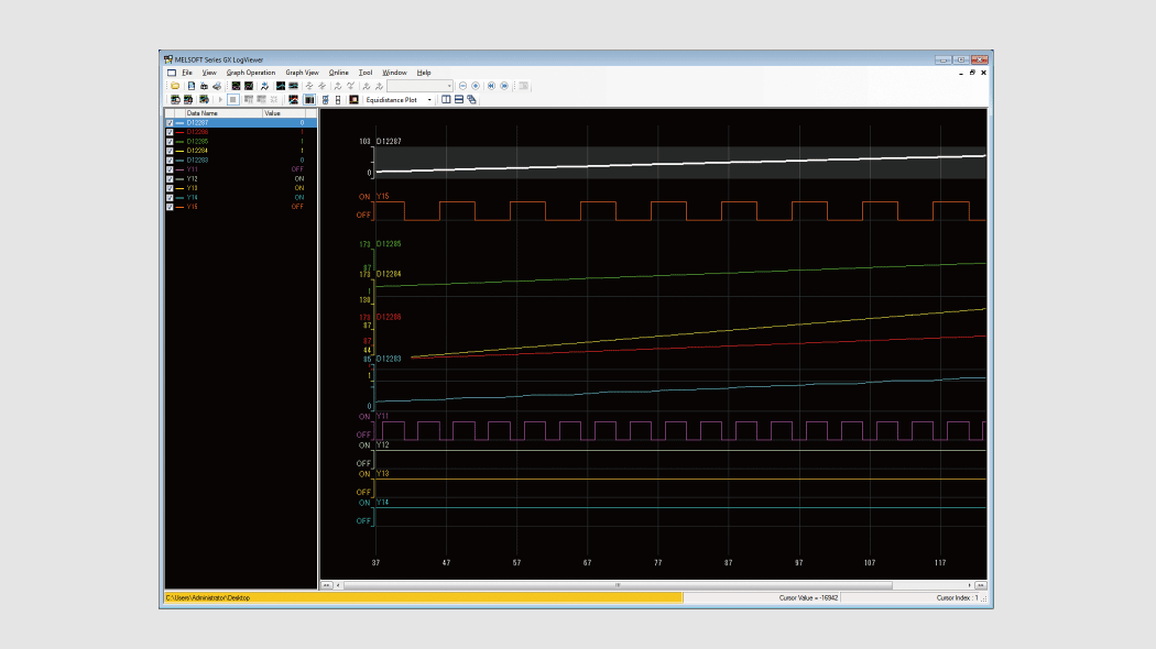GX LogViewer is an easy to operate tool, which displays and analyzes a large amount of data collected by units that have the logging function of the Q Series or L Series of products.