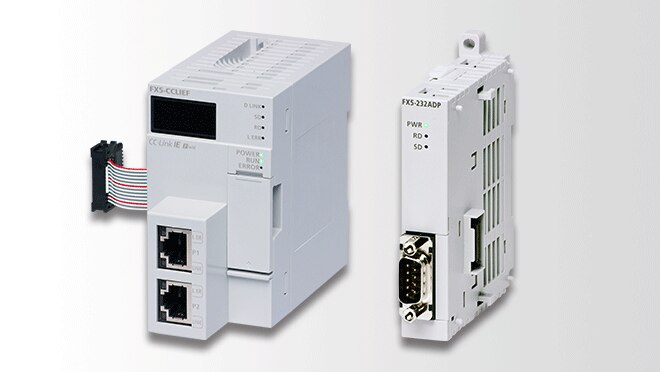 CC-Link IE Field Network intelligent device station module. RS-232, RS-485, RS-422 communication modules. FX3 series CC-Link master module can also be connected.