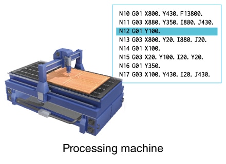 - Execution of G-code programs used in a processing machine enables simple machine tool and punching