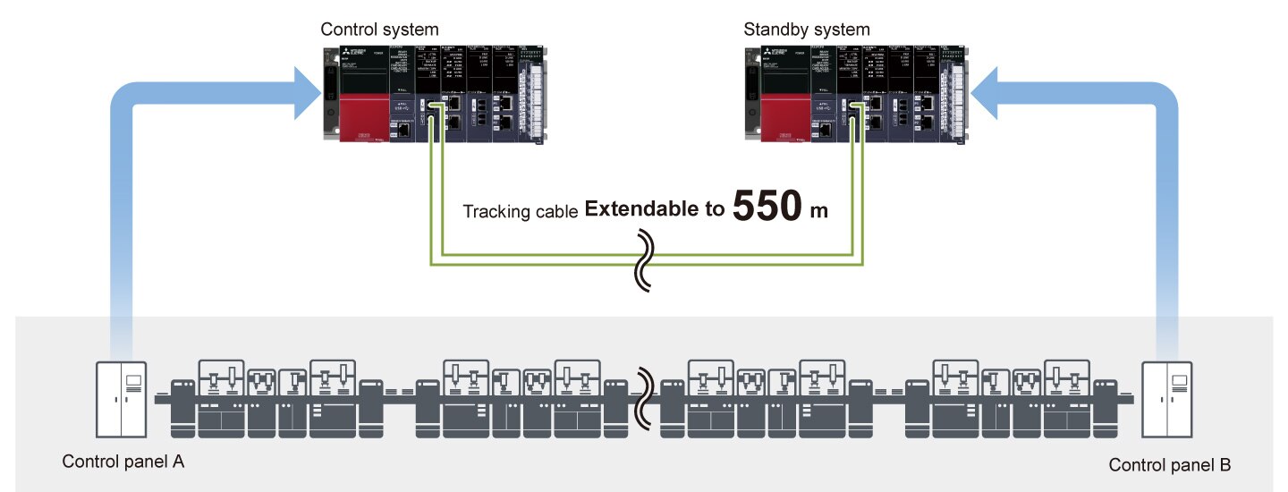 - Optical-fiber tracking cables enable the standby system to be installed in a remote location up to 550 m from the control (primary) system