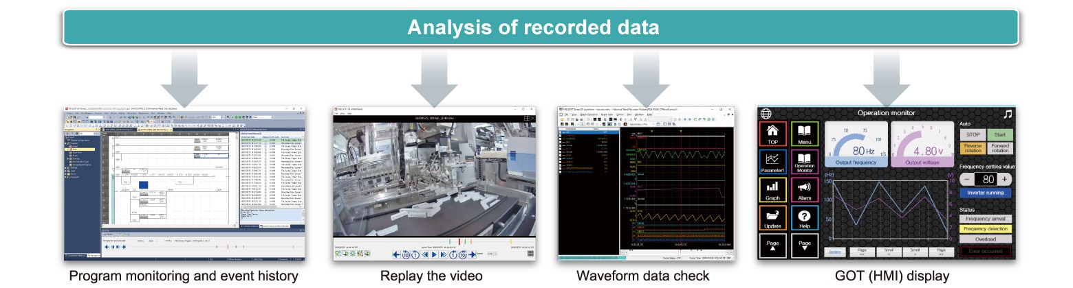 - Playback of data can be done very simply just by loading the recorded data into GX Works3, automatically executing all other necessary tools