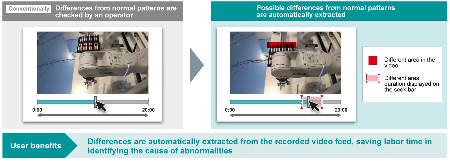 Differences are extracted according to changes in “appearance” and “operation”, then marked on the video feed automatically.