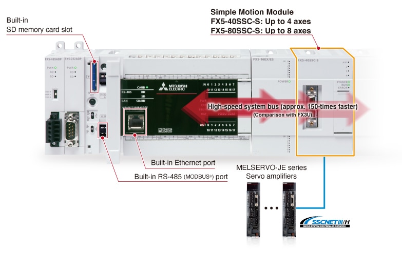 - Synchronous communications are achieved with SSCNETIII/H, offering technical advantages for machines that require deterministic control.