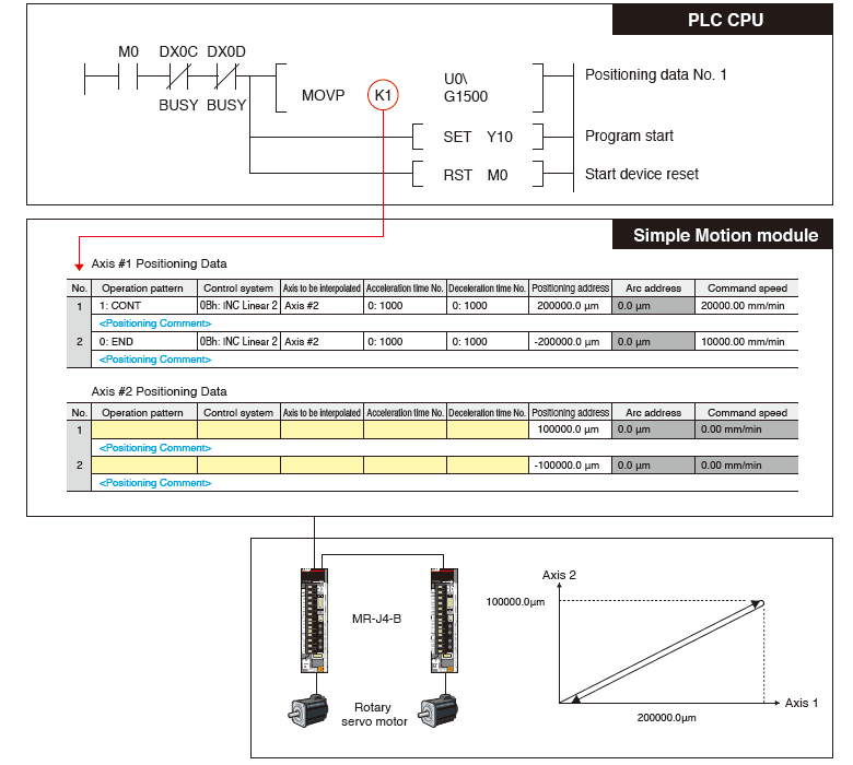 The Simple Motion module starts operation from the designated positioning data No. and continues operation until the operation pattern ends.
