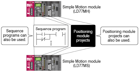 The Simple Motion module (LD77MH) projects and sequence programs are easily diverted to the Simple Motion module (LD77MS).