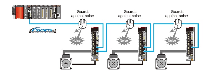 Complete deterministic and synchronized communication is achieved with SSCNETIII/H, offering technical advantages in machines such as printing and food processing machines that require synchronous accuracy.