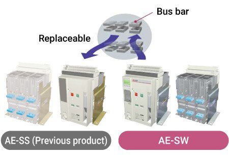 - A special adapter has been prepared for replacement of an AE-S model. (Only draw-out type supported.) Please contact us for details.