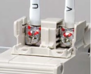 Equipped with finger protection, which consists of an open/close type compact terminal cover and marked insulation tube!