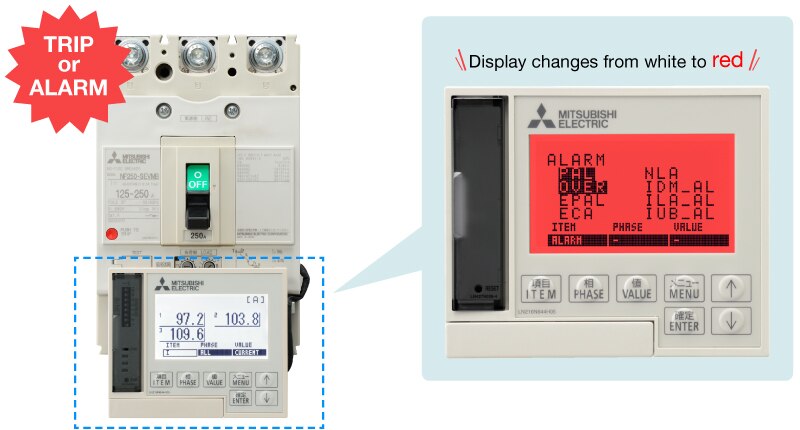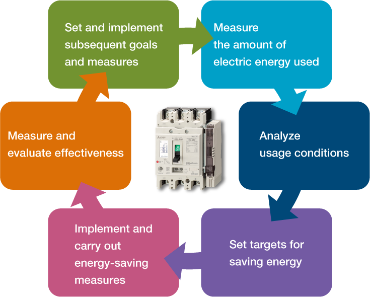 The load current, line voltage, power, electric energy, harmonic current, leakage current, and power factor passing through the circuit breaker are measured and displayed, allowing for detailed energy management for improved energy savings.