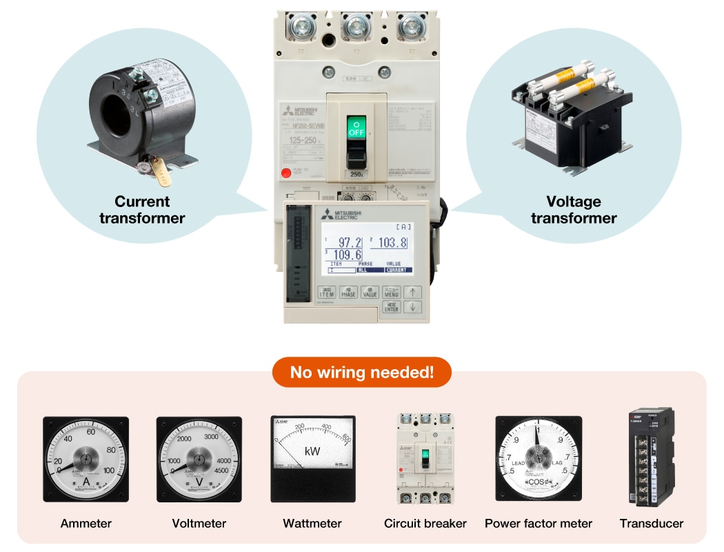 * Leakage current can be measured by measuring the leakage current of basic waveform components or by measuring leakage currents containing harmonics. Molded case circuit breakers (MCCBs) are not supported.