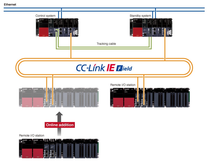 Utilizing dedicated instructions to set parameters of the CC-Link IE Field Network master/local module, remote I/O stations can be added online while the system is running, improving the system availability.