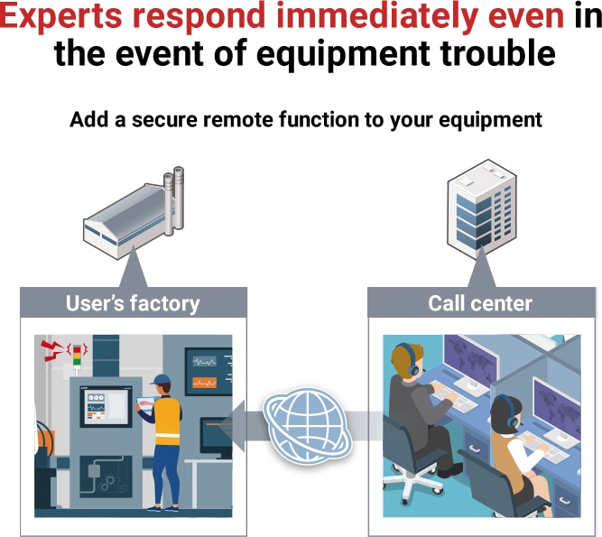 (2) Through a cloud server provided by Mitsubishi Electric, enabled remote access from the machine manufacturer’s call center or our service center.
