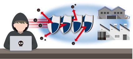 We recommend adopting multi-layer defense in your FA system to ensure efforts for security measures in accordance with Mitsubishi Electric's FA Security Guidelines be implemented at each layer (human layer, physical layer, network layer, device layer ), and achieve manufacturing at factories with a safe and reassuring security environment .