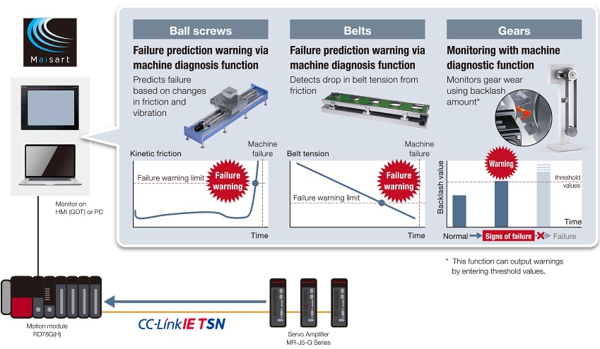 The friction torque of the belt is estimated by Maisart, and any drop in the belt tension is monitored. Failures are predicted by alerting users when the limit is exceeded.