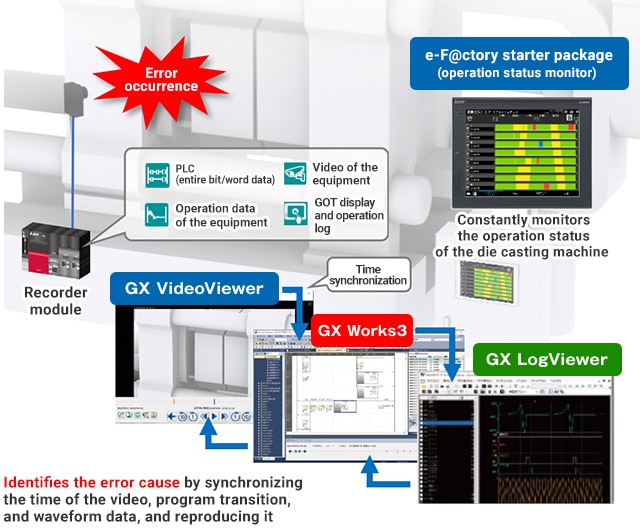 - The error cause is identified by synchronizing the time of the video, program transition, and waveform data, and reproducing it.