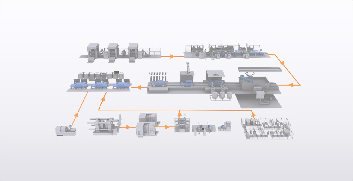 In vehicle manufacturing plants that handle a vast number of parts and wide variety of processes, there is a need to solve various issues such as responding to mixed production of many different car models, improving production speed and quality, considering worker safety and engaging in environment-oriented initiatives.