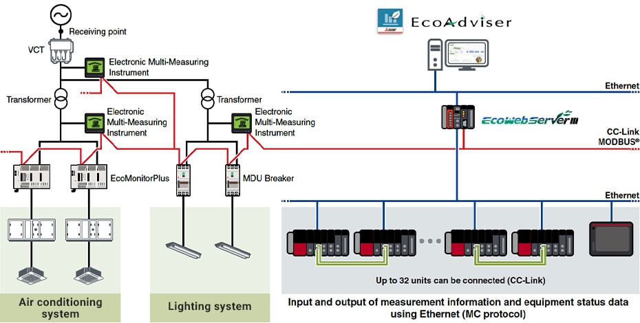 The use of various energy-saving support devices enables the measurement of current, voltage, electric power, electric energy, leakage current, etc., which in turn makes energy visualization possible and contributes to the acceleration of the PDCA cycle for energy-saving.