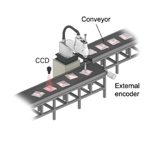 - Use external encoder data or CCD detection to perform high-speed tracking of battery position on conveyor and achieve high-speed transfer to the next conveyor.