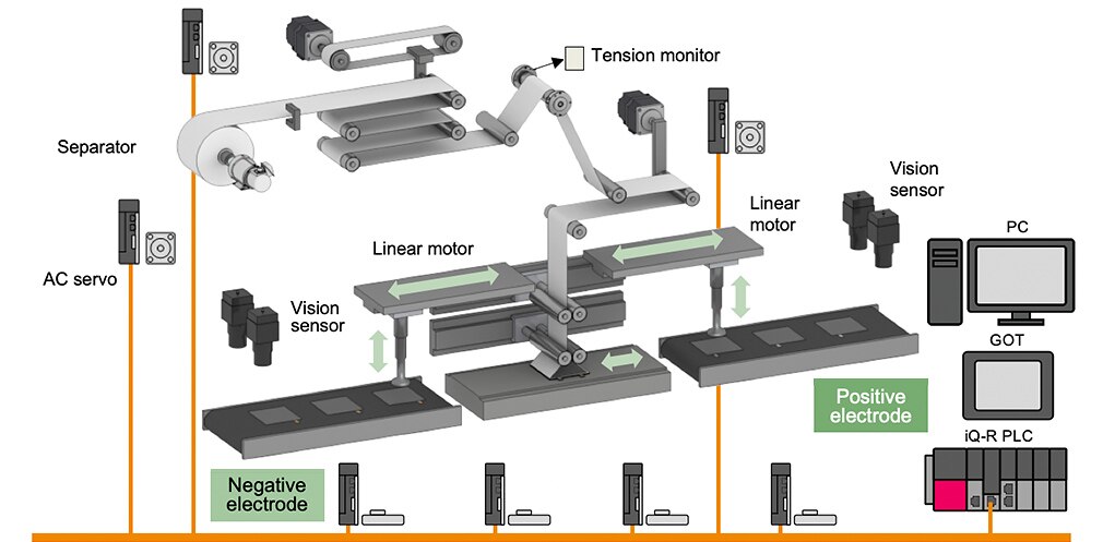 - Electrode position data detected by vision systems from various companies is read by the motion system via general-purpose Ethernet, enabling high-speed alignment correction to target position.