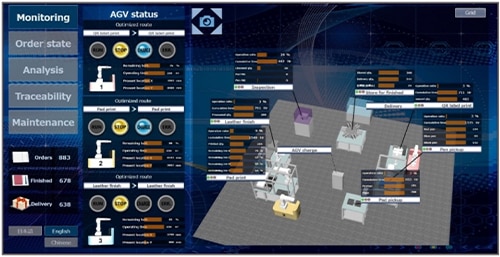 Collaborative robots installed on AGVs to reduce labor costs for loading and unloading work. Production and quality information can be collected and managed in an integrated manner through the cooperation of high-level management systems.