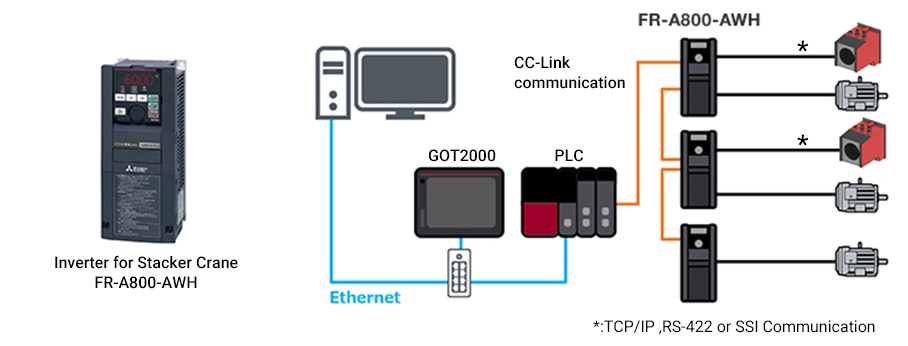 Equipped with various safety functions for stacker cranes in addition to standard inverter protection functions